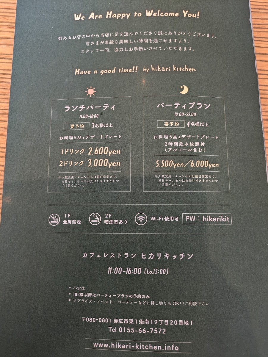 Welcome to hikari kitchen, an inviting café nestled in Obihiro, Hokkaido. This cozy eatery is celebrated for its diverse menu that caters primarily to women and groups, offering a plethora of options to satisfy various palates.